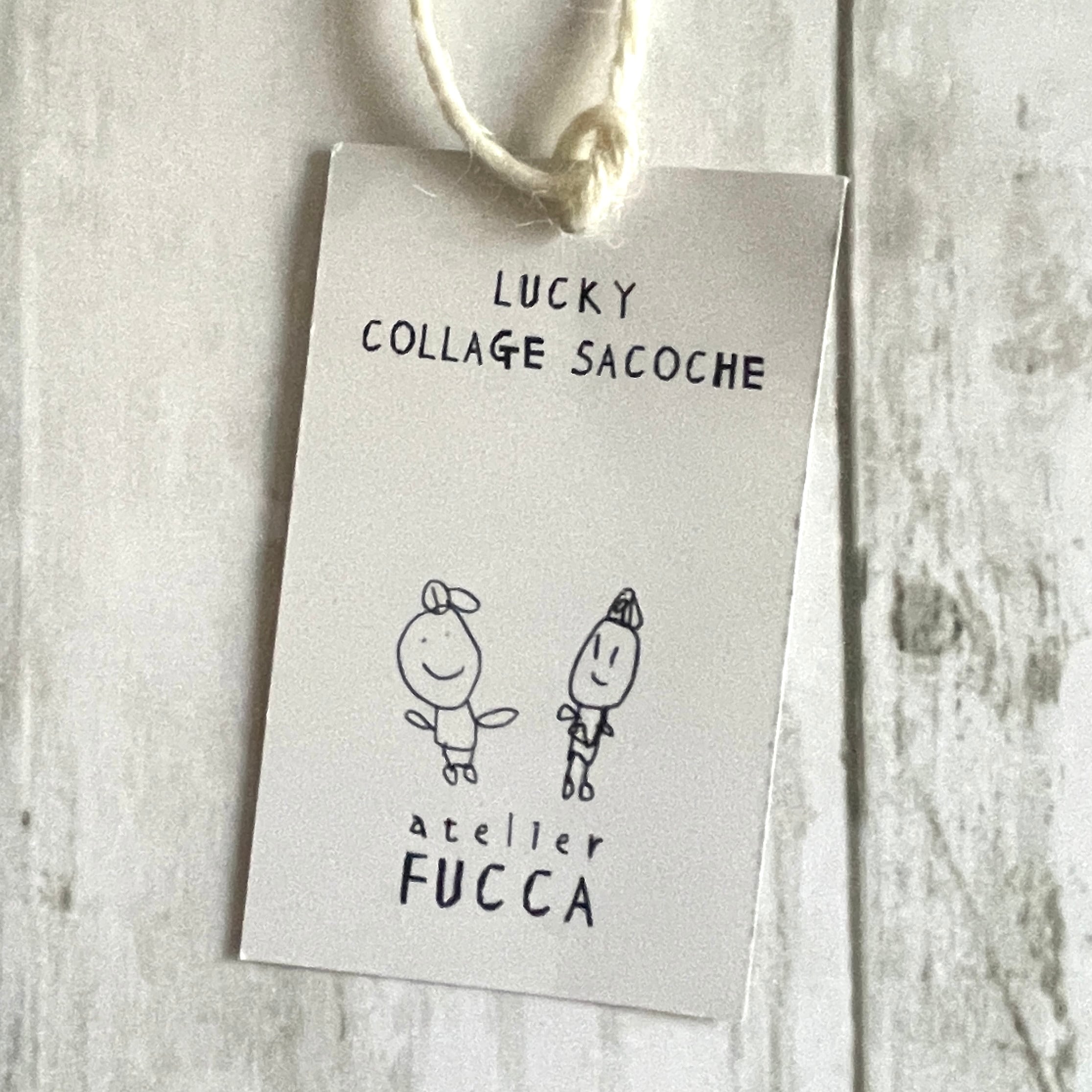 他のコラージュアイテムはフッカーみんなで作っているけど、このサコッシュを手がけるのはほぼラッキーちゃんのみ。なので命名、「ラッキーバッグ」。