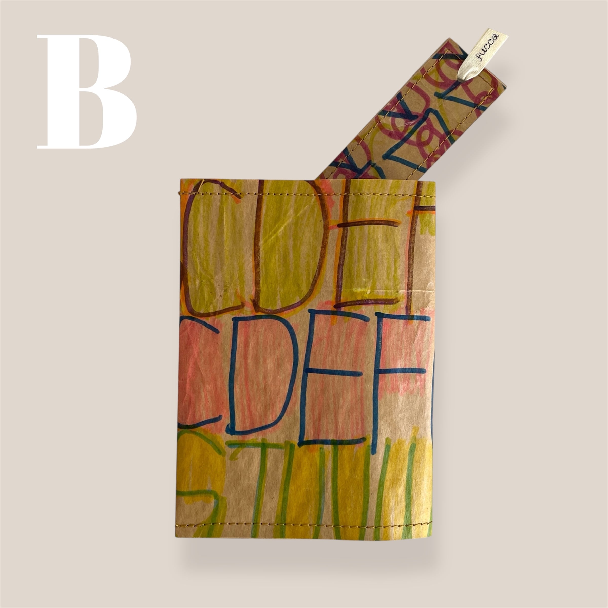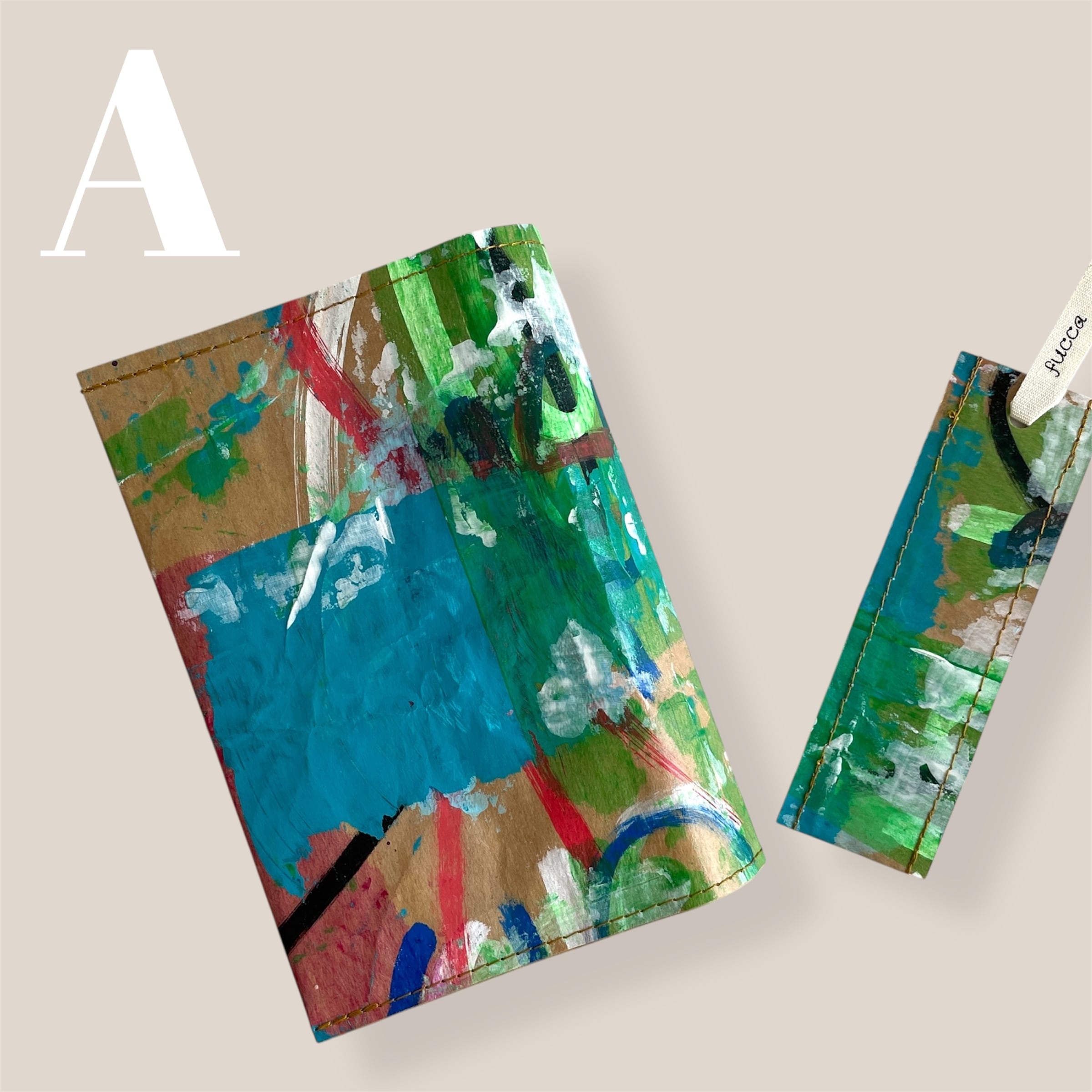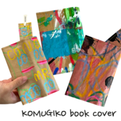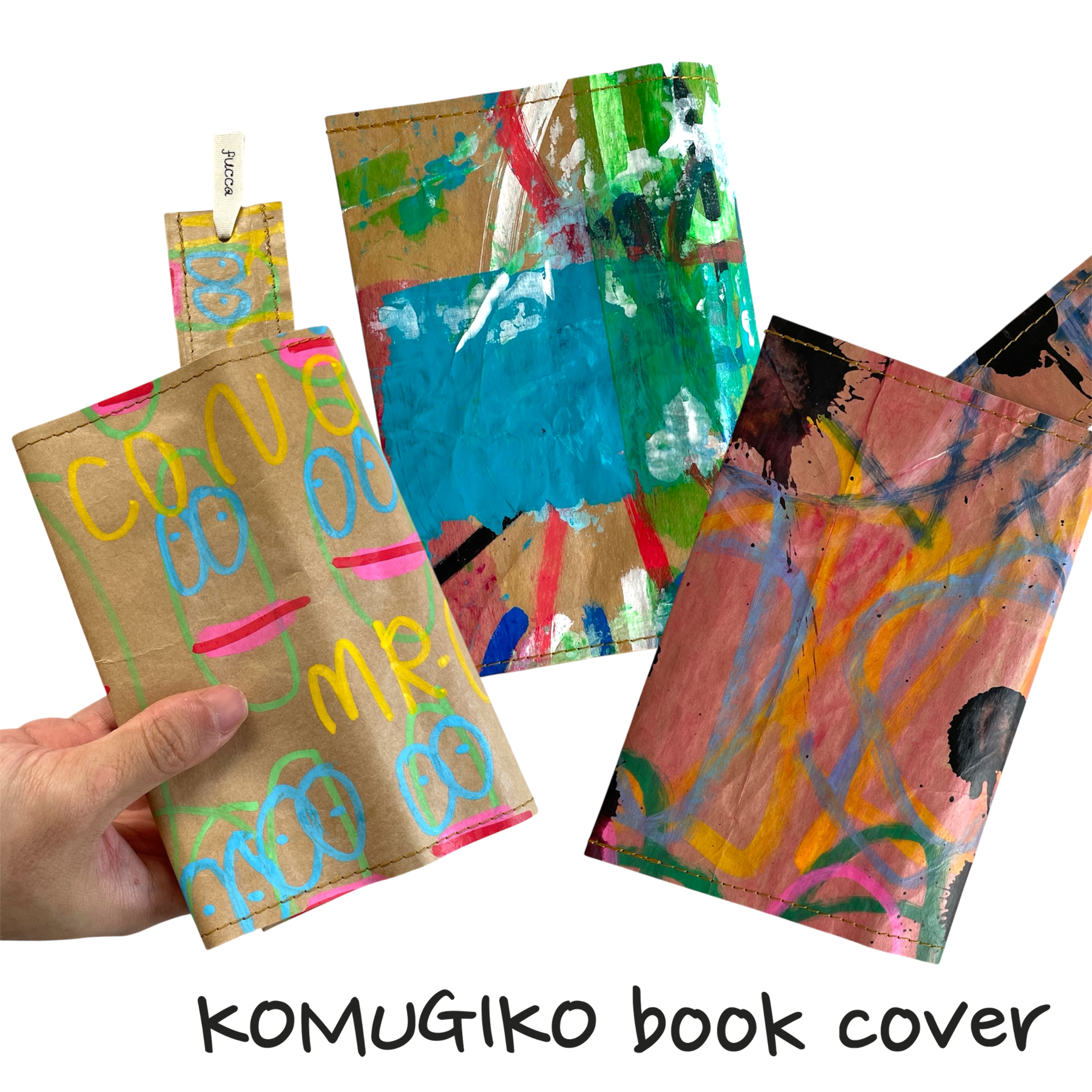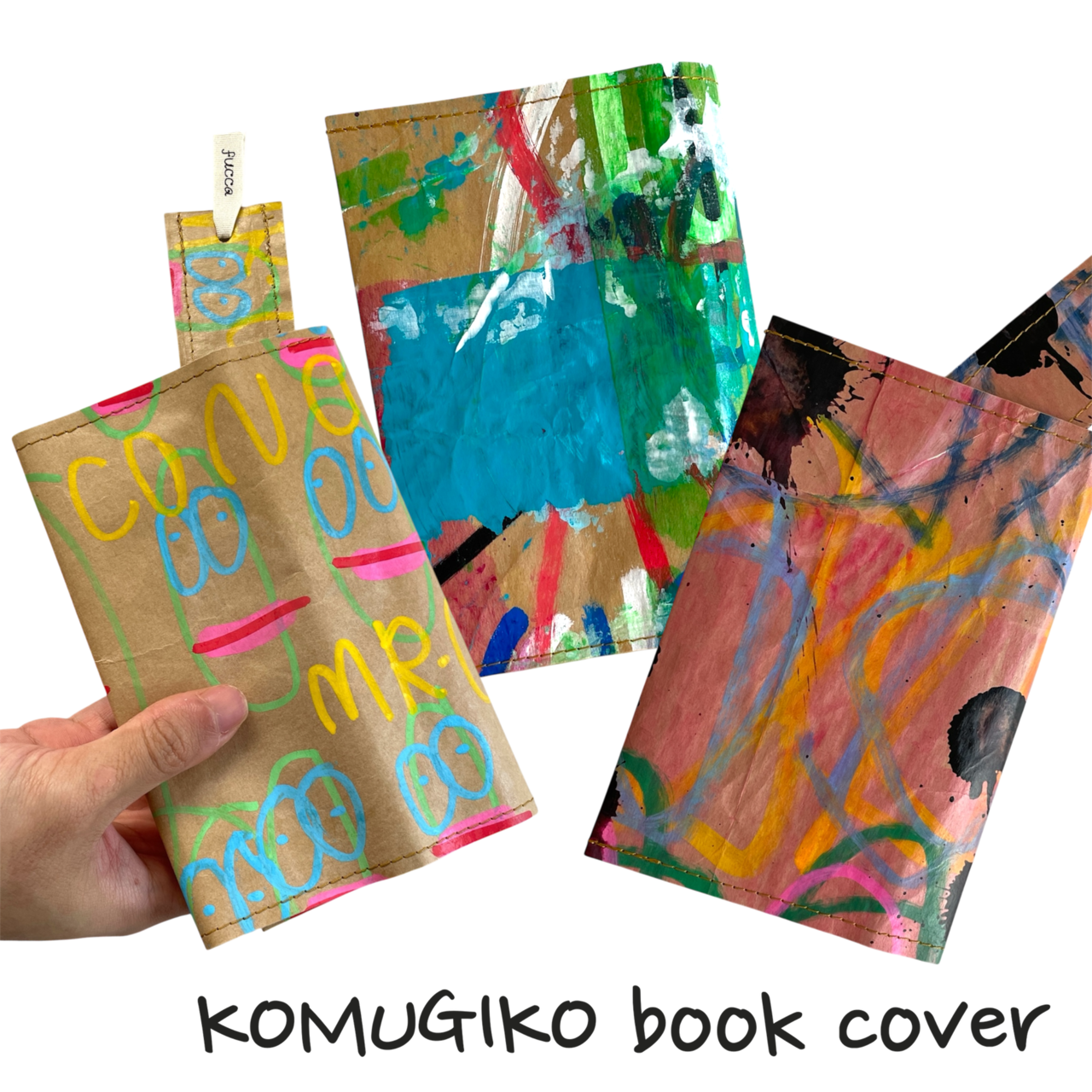そんなふうにしてできた"コムギコ生地"を使って、アトリエメンバーがミシン掛けをしてブックカバーに仕立てたよ。一般的な文庫本サイズにも、トールサイズの文庫本(ハヤカワ文庫、平凡社ライブラリーなど)にもつけられる、少し大き目のサイズ。