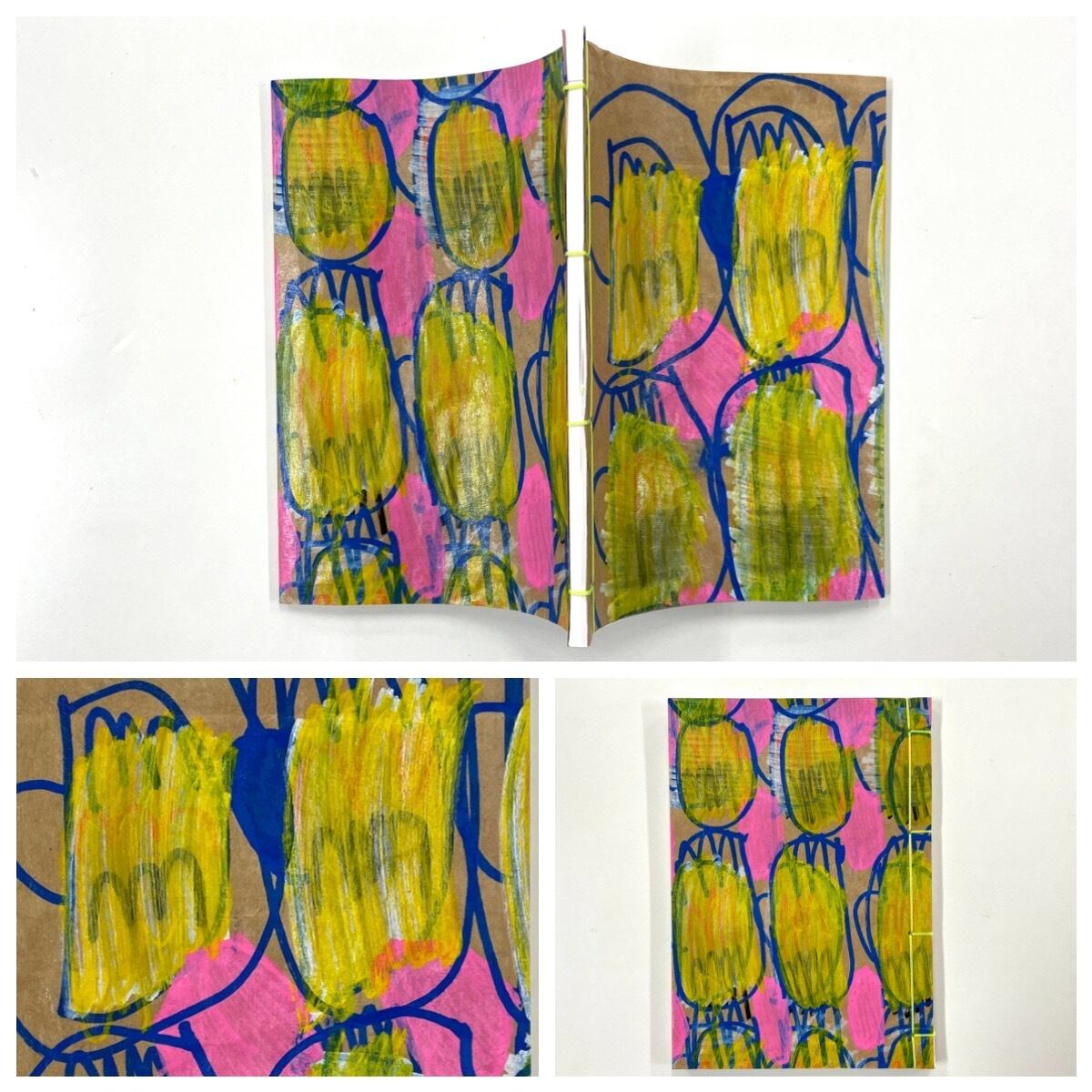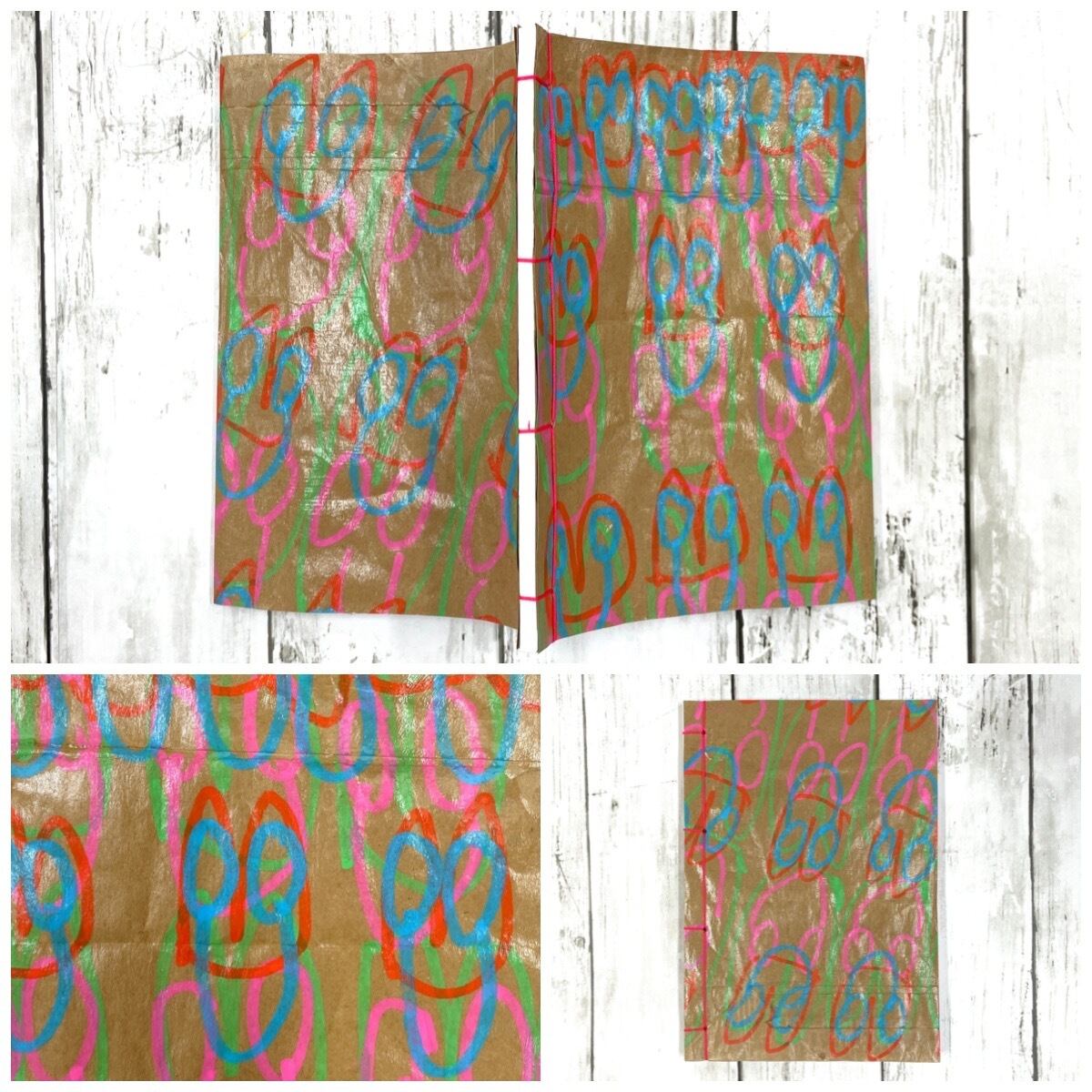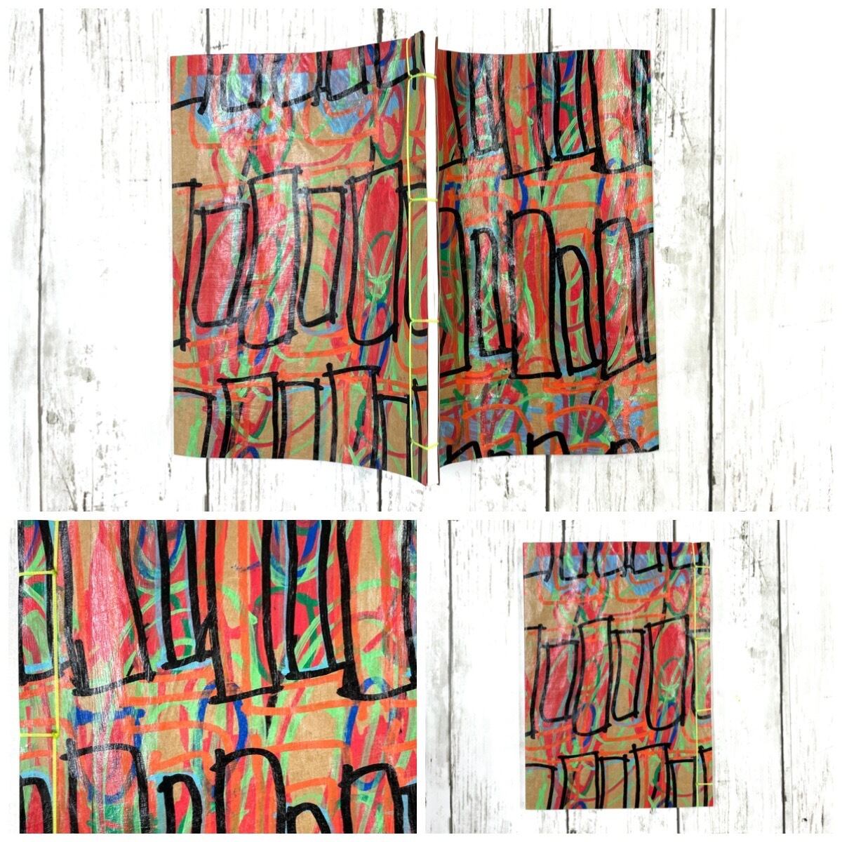 そんなふうにしてできた"コムギコ生地"を使って、フッカーミシン隊が日本古来の和綴じ製本でノートに仕立てたよ。