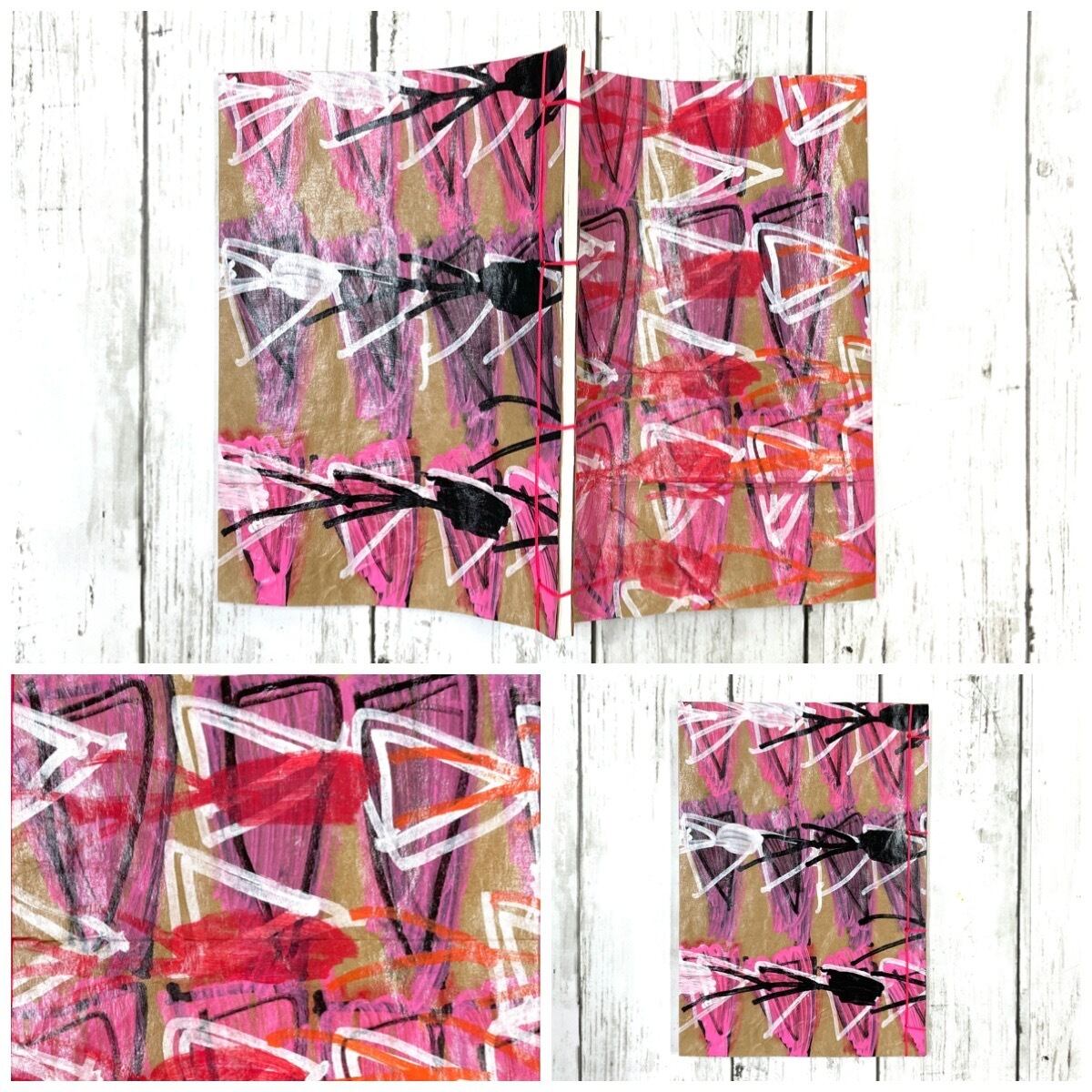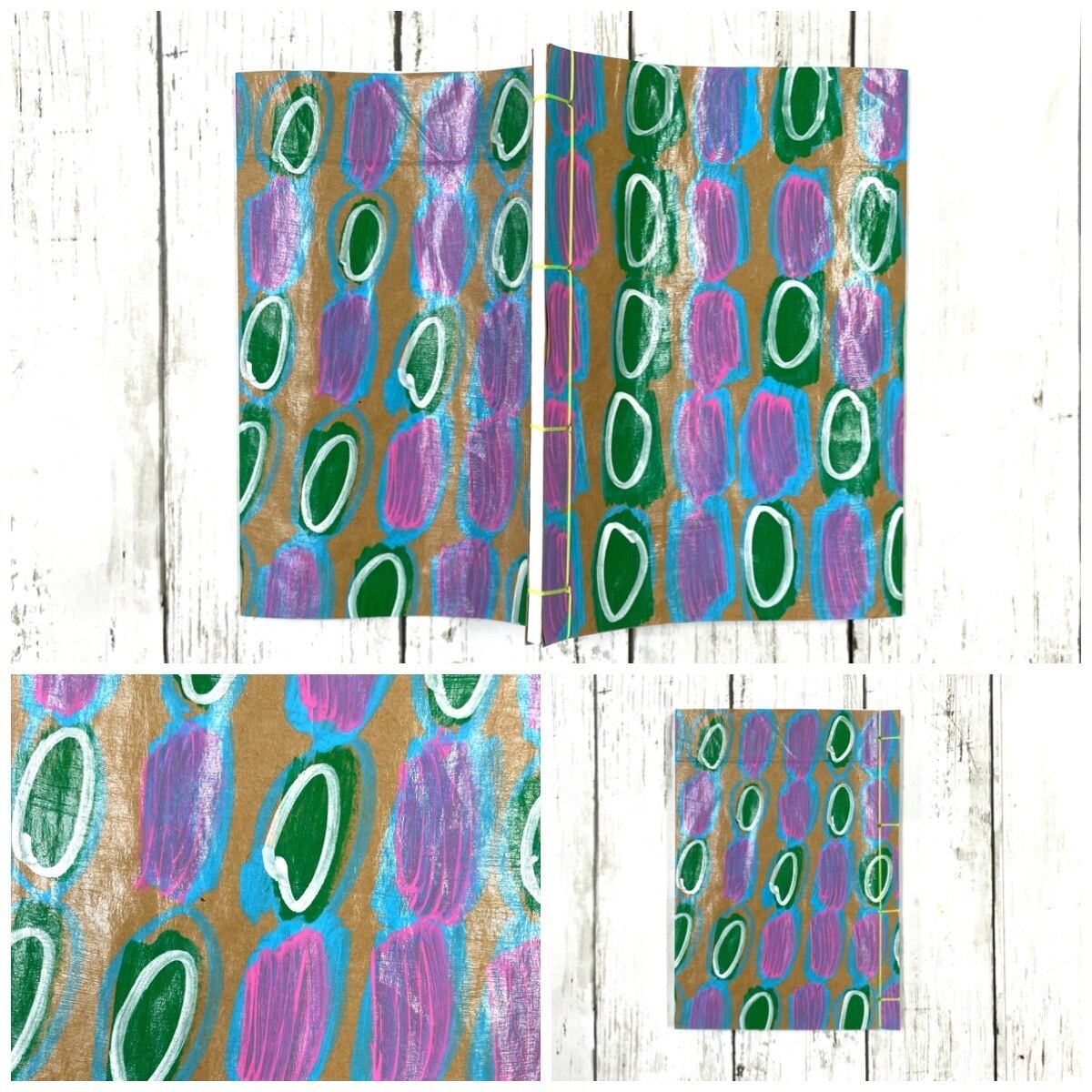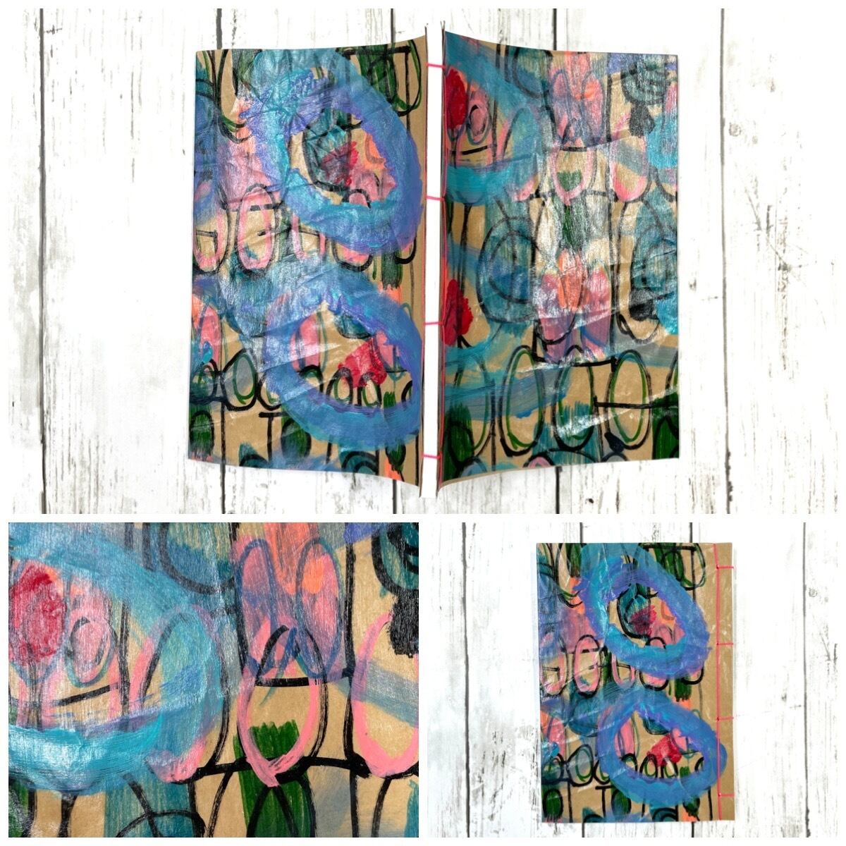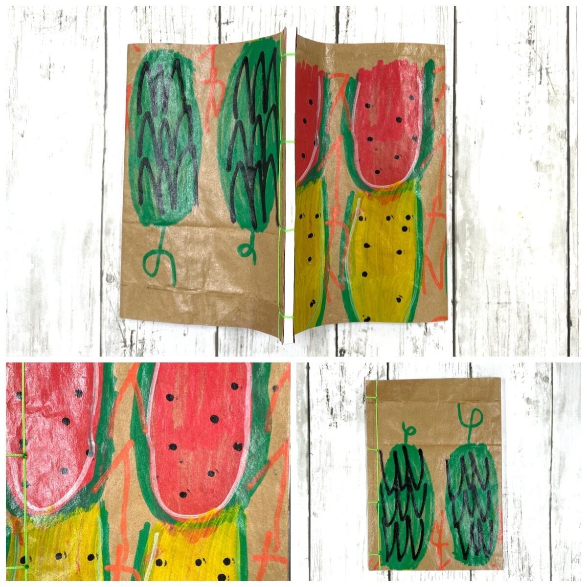 そんなふうにしてできた"コムギコ生地"を使って、フッカーミシン隊が日本古来の和綴じ製本でノートに仕立てたよ。