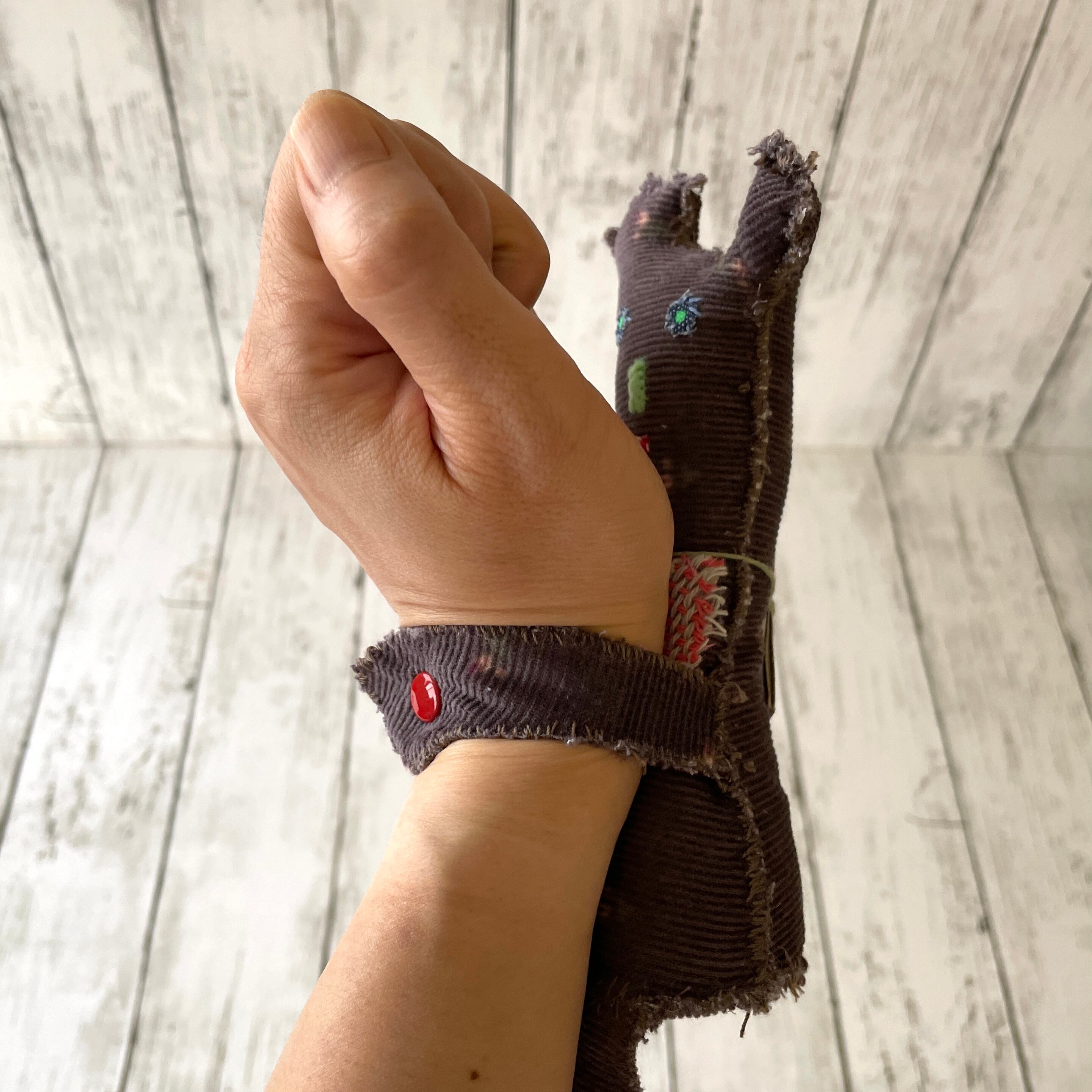 手の部分がスナップボタンになっているので、いろんなところに抱きつけちゃう。