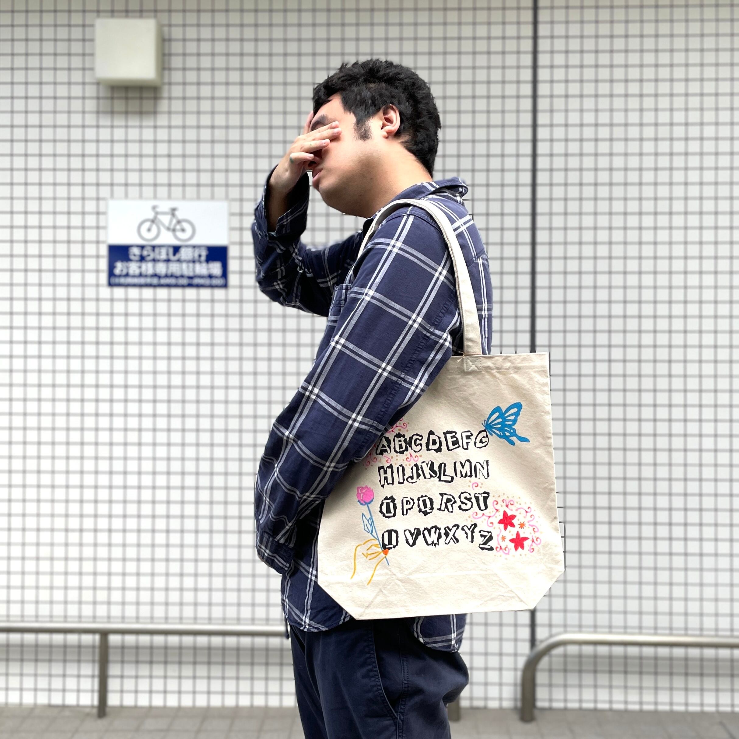そのプロジェクトで生まれたフォントを、シルクスクリーンで一枚一枚トートバッグにプリント。フッカのフォントはもちろん、気に入ったらほかの事業所のフォントも使っちゃう。